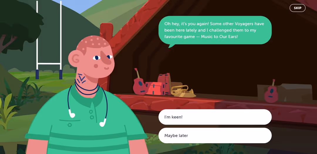 Our Journey is an online experience that takes participants on a digital voyage, discovering new islands, encountering characters, exchanging stories, and unlocking mini-games as they move through ten chapters. Along the way, they answer valuable questions that help researchers to gain deeper insights into the health and wellbeing of young people across New Zealand.